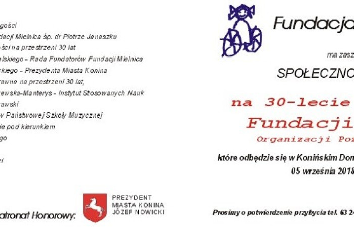 Jubileusz Fundacji Mielnica to ważne wydarzenie dla całej społeczności mielnickiej. W tym roku, w symboliczny sposób, spotykają się: przeszłość, teraźniejszość i przyszłość naszej organizacji. Łącznikiem między tymi trzema płaszczyznami czasowymi jest idea niesienia pomocy osobom niepełnosprawnym. Ona pozostaje niezmienna.