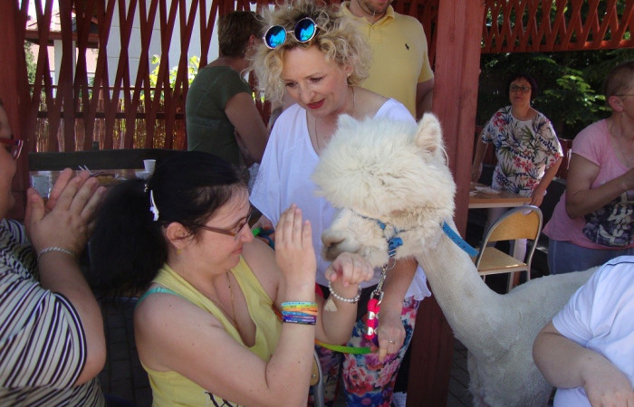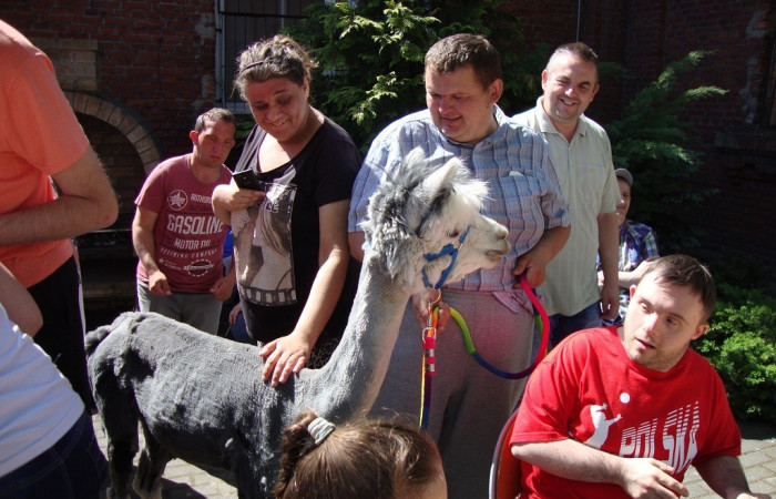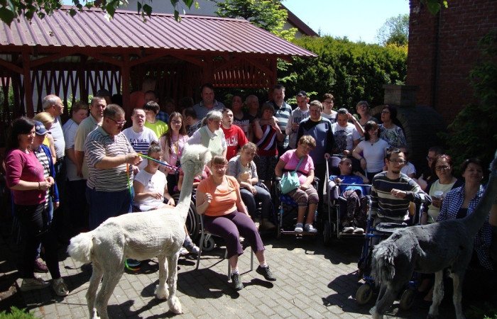 W dniu 09 maja 2018r. w naszej placówce WTZ Fundacji Mielnica w Koninie został zorganizowany gill dla podopiecznych. Atrakcją były alpaki – Alpakarnia Szyszyńskie Holendry. Dziękujemy Pani Marcie właścicielce alpak za przybycie i umilenie dnia naszym podopiecznym. Bliskie spotkanie z tak miłymi zwierzętami dało wiele wrażeń i radości.