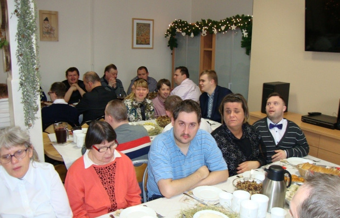 Dnia 20 grudnia 2019r. w Warsztacie Terapii Zajęciowej Fundacji Mielnica w Koninie odbyło się spotkanie opłatkowe. Przy wigilijnym stole usiedli Kierownik Pani Maria Janowska wraz z pracownikami i podopiecznymi WTZ Fundacji Mielnica oraz zaproszeni goście Pan Andrzej Obalski - Rada Fundatorów Fundacji Mielnica, Kierownik Środowiskowego Domu Samopomocy Fundacji Mielnica Pani Nikola Juzala-Grabowska oraz Pełnomocnik ds. Osób Niepełnosprawnych i Organizacji Pozarządowych Pan Bartosz Jędrzejczak. Spotkanie rozpoczęto od odczytania fragmentu Pisma Świętego i odśpiewania kolęd. W miłej atmosferze złożyliśmy sobie wzajemnie życzenia i usiedliśmy do stołu z tradycyjnymi potrawami świątecznymi.