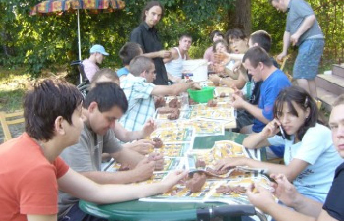 Od kilku lat łączymy trud pracy tworzenia z zajęciami sportowymi czyli coś dla ducha i coś dla ciała. Wspólnie pracują i bawią się dzieci i młodzież podopieczni Warsztatu Terapii Zajęciowej, Środowiskowego Domu Samopomocy i Klubu Środowiskowego, którzy z różnych powodów nie mogą skorzystać z wypoczynku letniego.