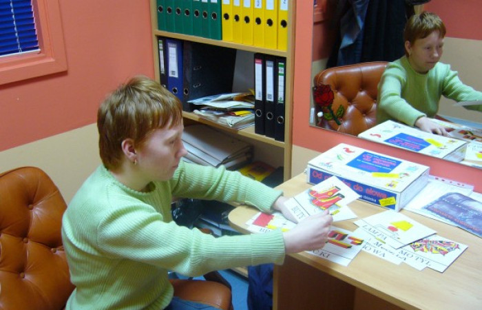 Pracownia rewalidacyjna - podstawowym celem oddziaływań w pracowni jest korygowanie, usprawnianie i dynamizowanie ogólnego rozwoju psychofizycznego uczestników ŚDS. Zajęcia odbywają się indywidualnie jak i w grupach. Uczestnicy podczas zajęć ćwiczą swoją percepcję wzrokową, słuchową, sprawność manualną, pamięć i koncentracje. Uczą się i doskonalą pisownie liter, cyfr, liczb, rozwiązują różne zadania matematyczne, co niektórzy ćwiczą czytanie oraz rozwiązują testy z czytania ze zrozumieniem. Prowadzimy także trening w zakresie wyglądu zewnętrznego i higieny osobistej, umiejętności praktycznych, funkcjonowania w codziennym życiu, umiejętności interpersonalnych i rozwiązywania problemów, umiejętności spędzania czasu wolnego. Wykonujemy proste prace techniką wyklejania, ozdabiania itp. Wykorzystujemy modelinę, plastelinę, masę solną, stosujemy technikę origami i papieroplastykę, często na zajęciach wykorzystujemy gry i zabawy edukacyjne, relaksujemy się słuchając muzyki.