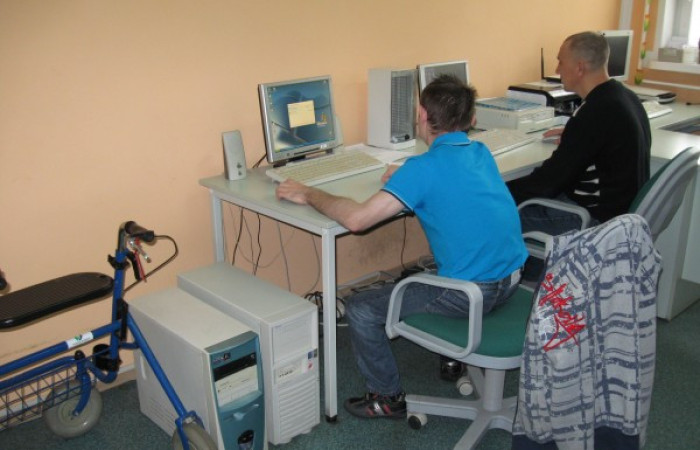 - Pracowni Informatycznej - różnorodność proponowanych w ramach terapii prac pozwala na odkrywanie przez uczestników zdolności w zakresie obsługi komputera oraz podnoszenie sprawności intelektualnej i manualnej. Bogactwo i różnorodność ćwiczeń pozwalała utrwalać i podnosić zakres wiedzy uczestnika niezależnie od stopnia wiedzy i umiejętności, jakie posiadł wcześniej. Główne zadania pracowni to: przepisywanie prac, skanowanie rysunków i zdjęć, wykonywanie kartek okolicznościowych i świątecznych, projektowanie i wykonywanie zaproszeń, wizytówek i dyplomów, praca z wykorzystaniem Internetu na potrzeby wszystkich pracowni WTZ. Satysfakcja z dobrze wykonanych zadań wzmacnia u uczestników poczucie własnej wartości i motywuje do dalszej pracy.